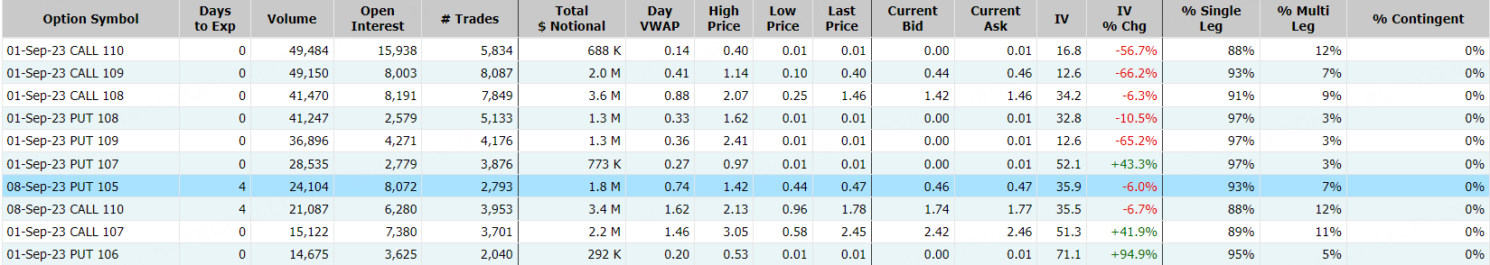 AMD上周五涨超3%,期权合约成交71.29万张。9月8日到期的105美元的行权看跌期权交易量特别高,共有24,104份合约交易。 $AMD 20230908 105.0 PUT$