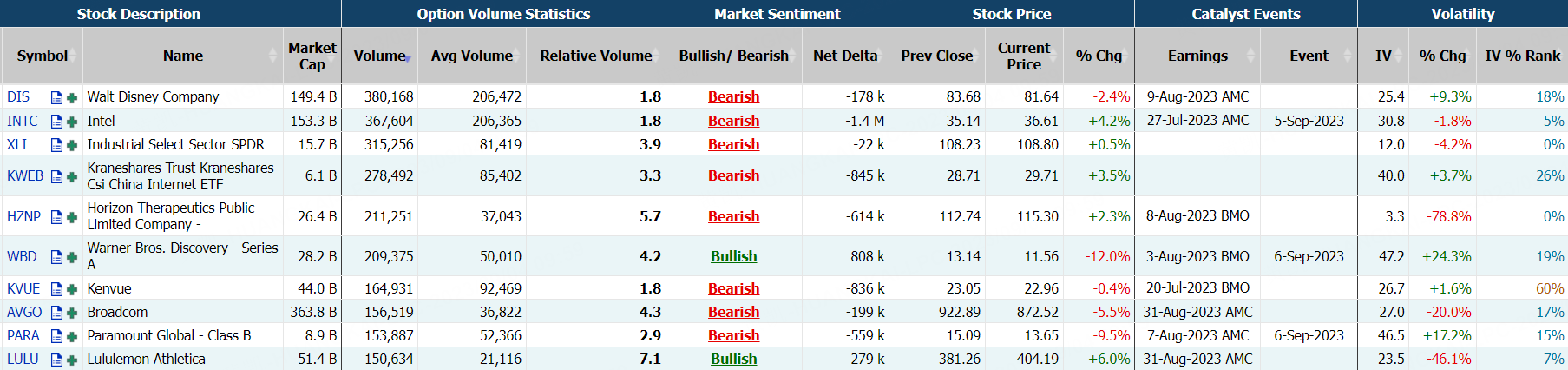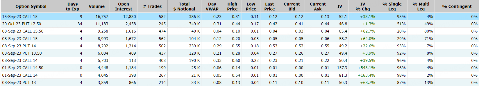 Paramount Global上周五跌超9%,期权合约成交15.4万张,较90日平均成交量扩大近3倍。9月15日到期的15美元的行权看涨期权交易量特别高,共有16,757份合约交易。 $PARA 20230915 15.0 CALL$