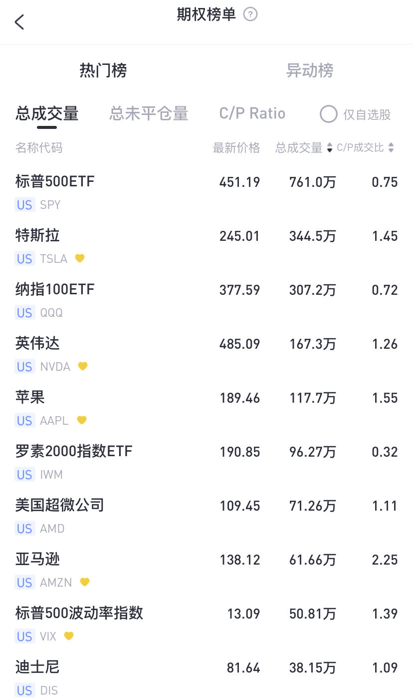 标普指数ETF-SPY期权成交761万张合约,其中,看跌期权占比57%。
