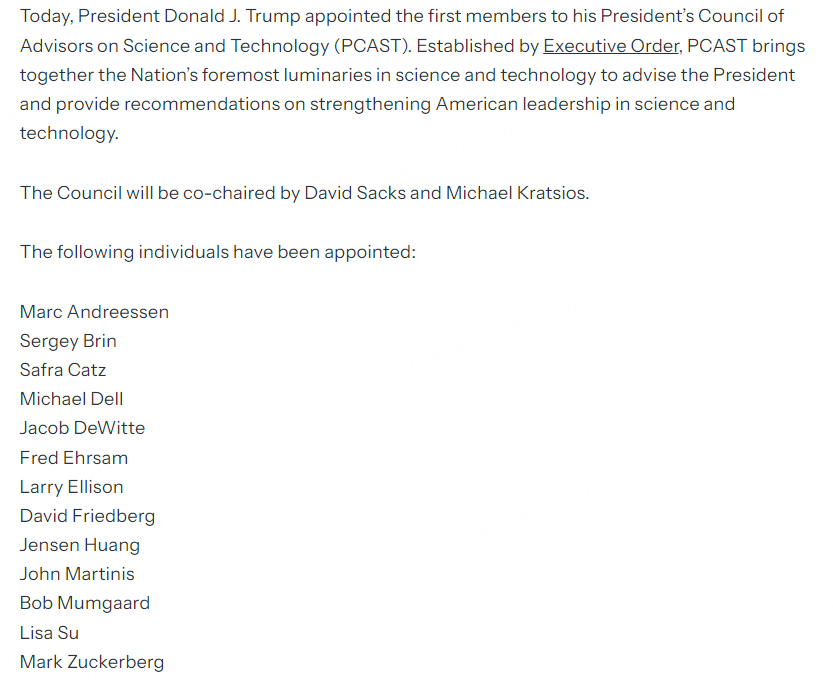 特朗普组建科技委员会:扎克伯格、黄仁勋、苏姿丰、埃里森等顶级CEO入选