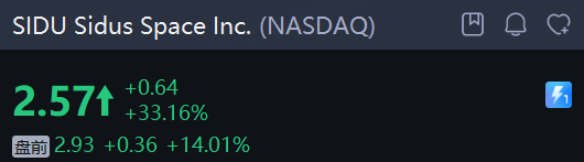 太空概念股 Sidus Space 盘前再涨超14%,昨日收涨33%,近六个交易日暴涨200%。
