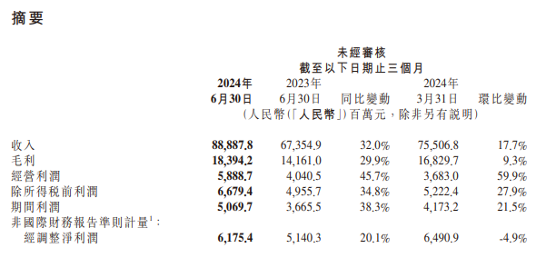 营收888.9亿元人民币,同比大增32%,已连续4个季度同环比实现正增长。