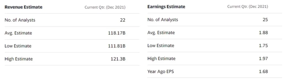 According to Yahoo Finance, Apple is expected to deliver revenues of $118.2 billion in fiscal Q1, representing 6% growth YOY. Should this happen, the sales figure will be the largest of any quarter in Apple’s history, beating the 2020 holiday quarter for the top spot.