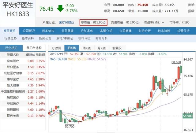 业务及政策上的多方利好,也使得平安好医生股价在近期迎来大涨。自2020年1月20号以来,平安好医生股价已累计上涨超过20%,市值也超过800亿港币。