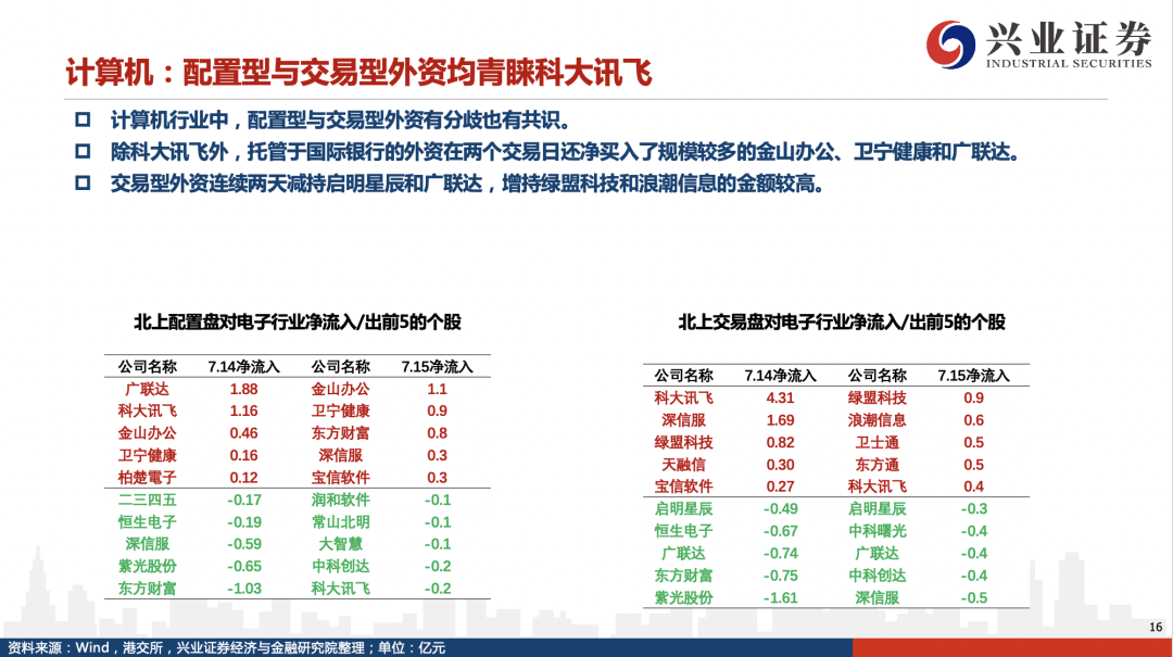 计算机:配置型与交易型外资均青睐科大讯飞。
