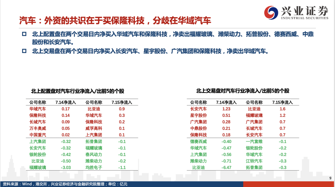 汽车:配置型与交易型外资的共识在于买保隆科技,分歧在于华域汽车。