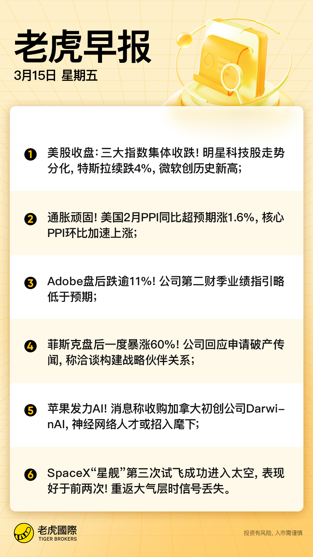 通胀顽固!美国2月PPI同比超预期涨1.6%,核心PPI环比加速上涨;
