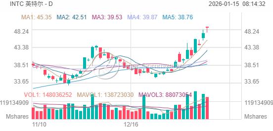 据道琼斯市场数据,英特尔股价周三收涨 3%,至 48.73 美元,为 2024 年 1 月 25 日以来的最高水平;该股周二已上涨 7.3%。
