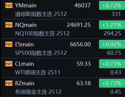 10月13日,市场担忧情绪稍微缓解,今晨金融市场开盘,美股股指期货反弹,纳指期货涨超1%;WTI原油和布伦特原油涨幅一度超1%;现货黄金一度冲上4060美元/盎司,再创历史新高;比特币短线上扬大约1000美元,刷新日高、逼近11.5万美元,日内当前涨幅超过3.6%;以太坊短线走高,刷新日高、逼近4200美元,当前涨幅超过11%。
