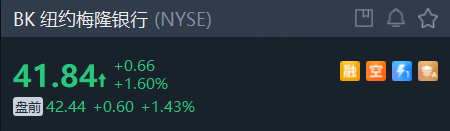 截至发稿,纽约梅隆银行盘前涨超1.4%。