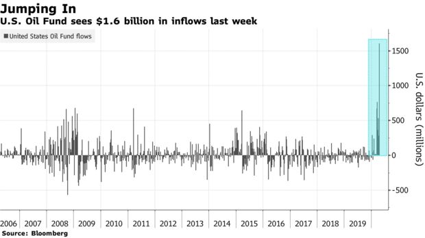 市场混乱也激起了最大跟踪原油交易所交易基金——美国石油基金的交投。上周,投资者向该基金注入了逾16亿美元资金,押注原油价格将触底,但迄今仍未见底。在此之后,该基金周一的交易额超过30亿美元,创下该基金成立以来的最高单日交易额。