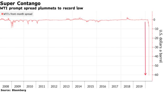 对此,彭博社撰文表示,除了“负油价”,以下三张图也揭露了油市昨夜有多疯狂!