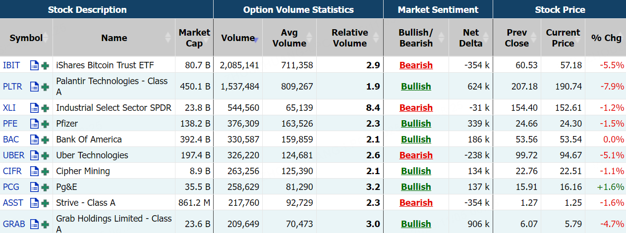 周二,期权市场总成交量5778.93万张合约,高于90日均量;英伟达、Palantir当日期权分别成交236.5万张、156.39万张,期权显示多空分歧巨大;IBIT当日期权成交逾200万张,多张于本周五到期的Put单翻倍大涨>>