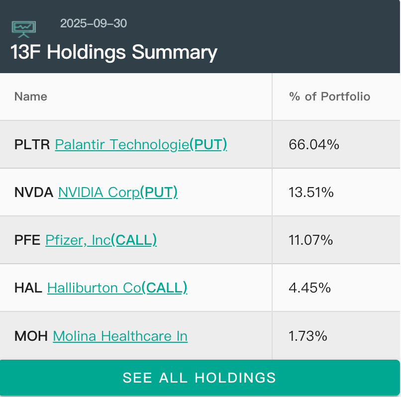 最新监管文件显示,华尔街“大空头”Michael Burry管理的Scion Asset Management约80%的持仓集中于做空AI大牛股Palantir、英伟达,押注规模之大引发市场关注。在此之前,他曾向散户投资者发出了一则关于市场狂热的隐晦警告。