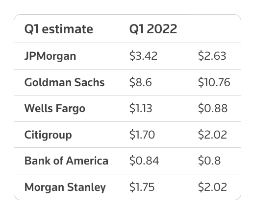 高盛的每股收益可能会下降五分之一,受到投资银行业务的困扰,此前该行四季度利润下降了69%,受到财富管理收入和消费者业务亏损的影响。