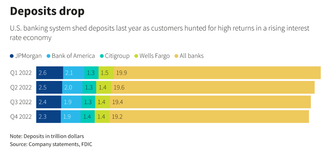 分析师表示,上个月硅谷银行倒闭后,储户开始纷纷逃离小型银行转向大型银行。大型银行吸纳了不少廉价存款,这可能会提振几家银行巨头的净利息收入。