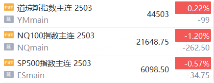 美股期货周一亚市盘初下挫,纳斯达克100指数期货跌1.2%,标普500指数期货跌0.57%,道指期货跌0.22%。