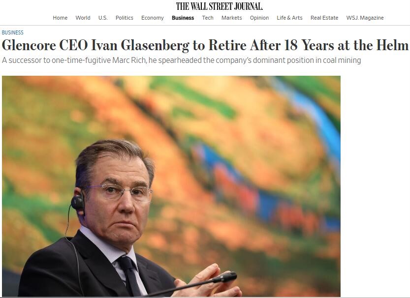 华尔街日报:执掌嘉能可18年的CEO将卸任