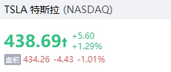 特斯拉跌超1%,报434.26美元,消息称特斯拉机器人停产。