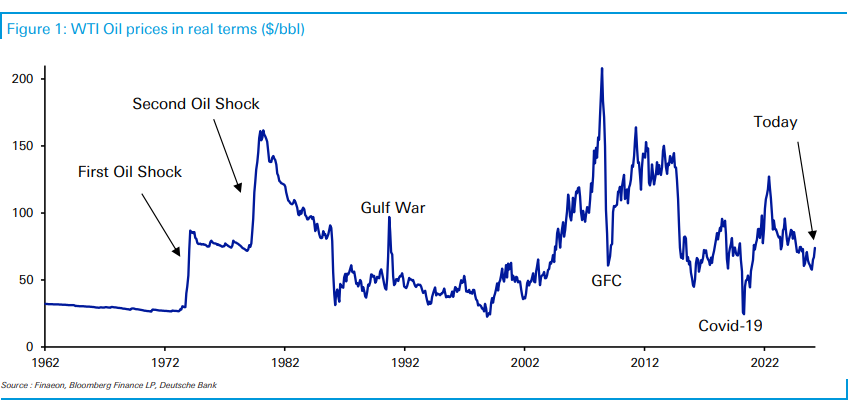 德银得出结论,当前的油价波动在历史上属于"中等偏下"量级,尚不构成系统性风险的触发条件。