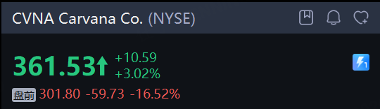 二手车交易商Carvana Co. 盘前大跌超16%,Carvana第四季度调整后EBITDA为5.11亿美元,低于市场普遍预期的5.357亿美元。营收达到56亿美元,超过分析师预期的52.4亿美元,同比增长58%。公司车辆检查、维修和细节处理等方面的支出高于预期,零售折旧率上升带来成本压力。