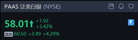 现货白银日内涨幅超2%,白银概念股盘前走强, 2倍做多白银ETF-ProShares 、泛美白银涨超4%, 白银ETF-iShares 、赫克拉矿业涨超2%。