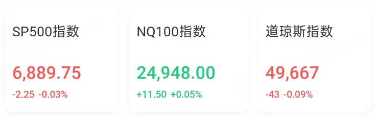 大型科技股盘前涨跌不一。苹果跌0.43%,特斯拉跌0.22%,Meta跌0.23%,谷歌跌0.1%,英伟达涨0.03%,微软涨0.45%。