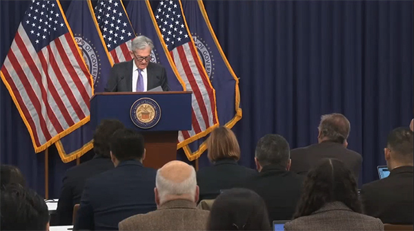 美联储主席鲍威尔在12月利率决议公布后召开新闻发布会。