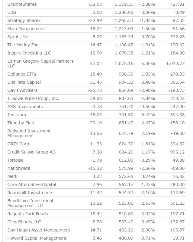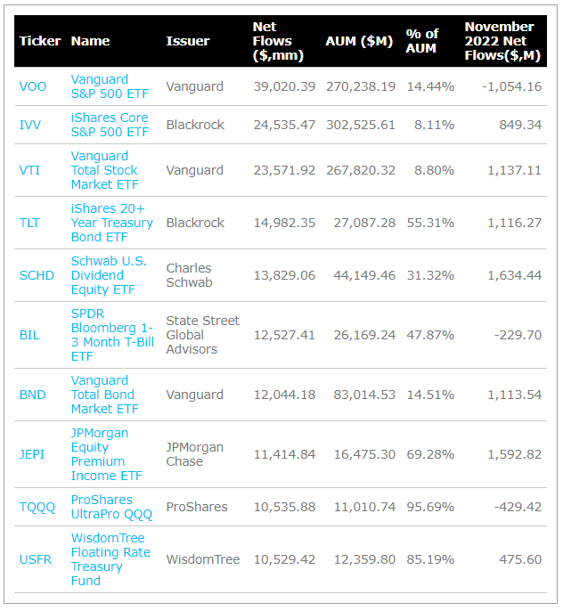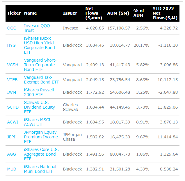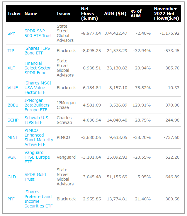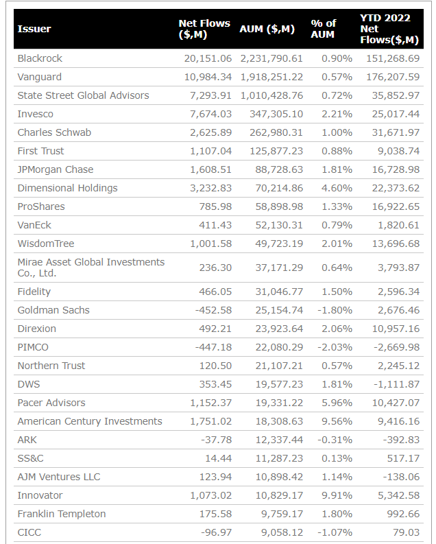 有关 10 月份最大资金流入和流出的完整列表,请参见下表: