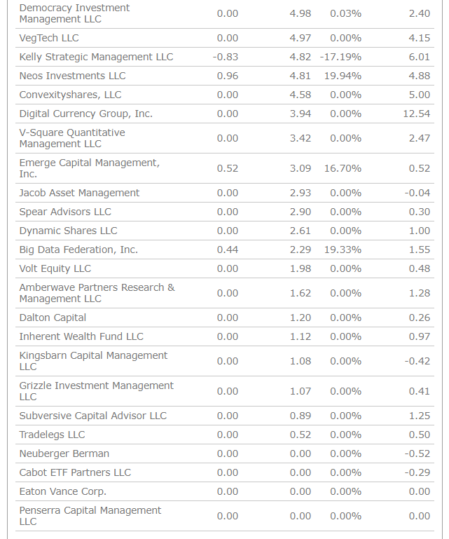 与此同时,美国固定收益基金受到投资者的关注,该资产类别在上个月达到近 220 亿美元。投资者的最爱包括Vanguard Short-Term Corporate Bond ETF (VCSH)和iShares iBoxx USD High Yield Corporate Bond ETF (HYG)。