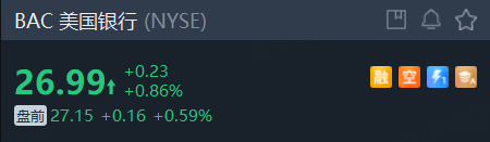 截至发稿,美国银行小幅上涨。