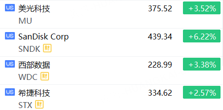 1月20日,美股存储板块盘初表现强势,SanDisk涨超6%,美光科技、西部数据涨超3%,希捷科技涨超2%。