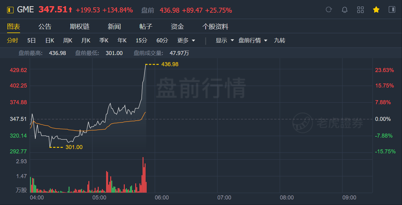 1月28日(周四)美股盘前,游戏驿站一扫颓势,涨幅扩大至25%,此前该股盘前一度跌超13%。