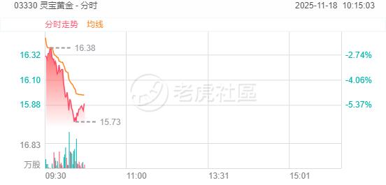 11月18日,港股黄金股盘中下跌,灵宝黄金跌超6%,潼关黄金跌逾4%,紫金黄金国际中国黄金国际跌超3%,山东黄金赤峰黄金跌超2%。