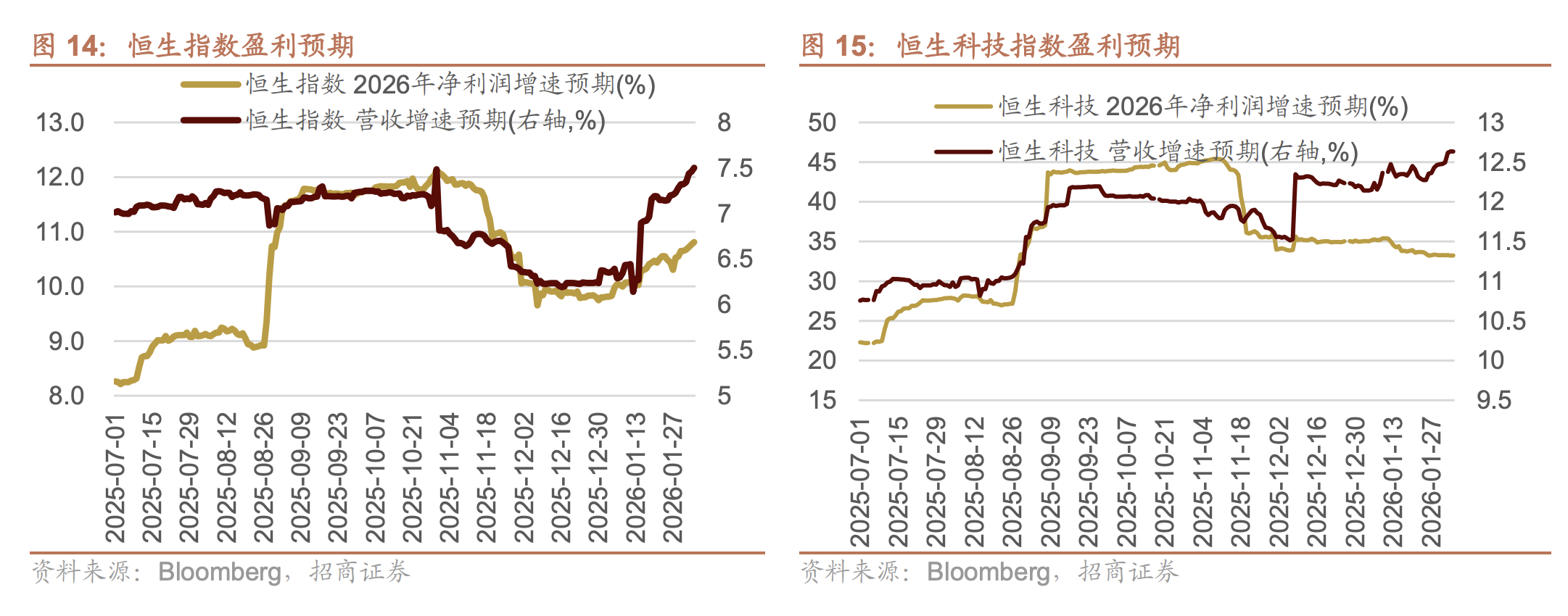 对于近期恒生指数和恒生科技指数表现的分化,背后对应的是两个指数近期盈利预期走势的分化。整体来看,恒生指数的盈利预期近期是温和上调的,这是近期恒生指数更有韧性的原因;恒生科技指数的EPS预期从9月以来持续下调,但目前已经有所企稳,表明当前的股价已经反映了市场对盈利的阶段性下修。