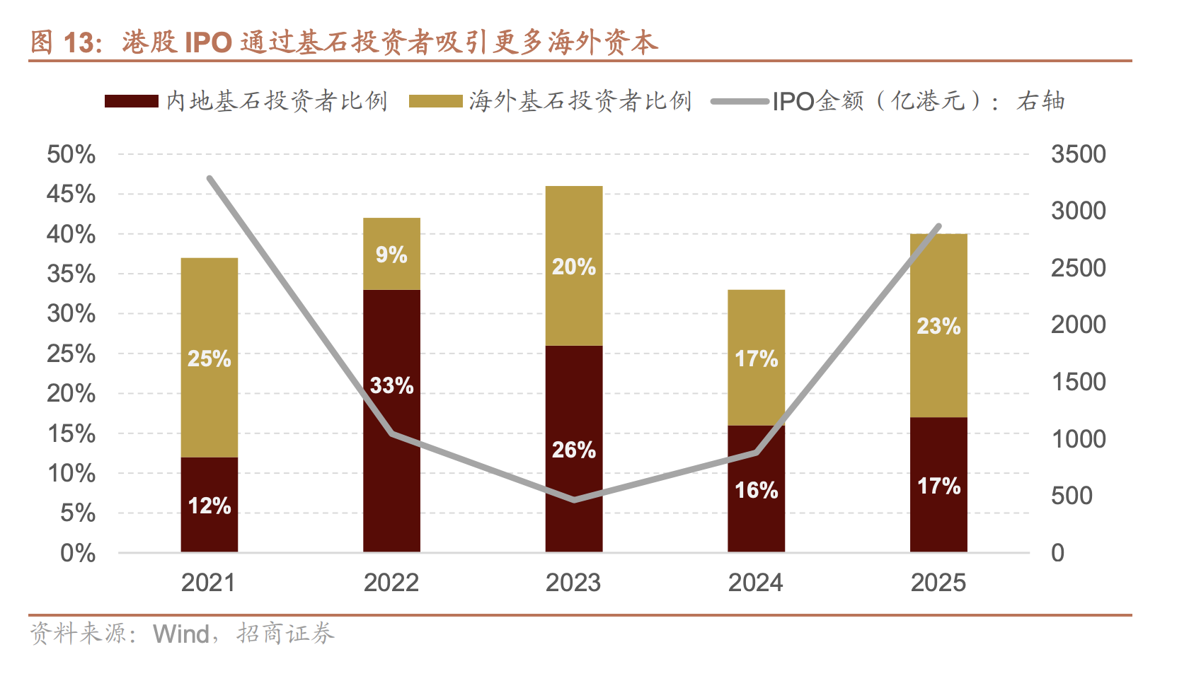 吸引外资参与。港股IPO发行的背后,越来越多的外资作为基石投资者参与,据万得数据统计,2025年港股IPO中海外基石投资者比例升高至23%,这也是外资参与中国市场的重要方式。