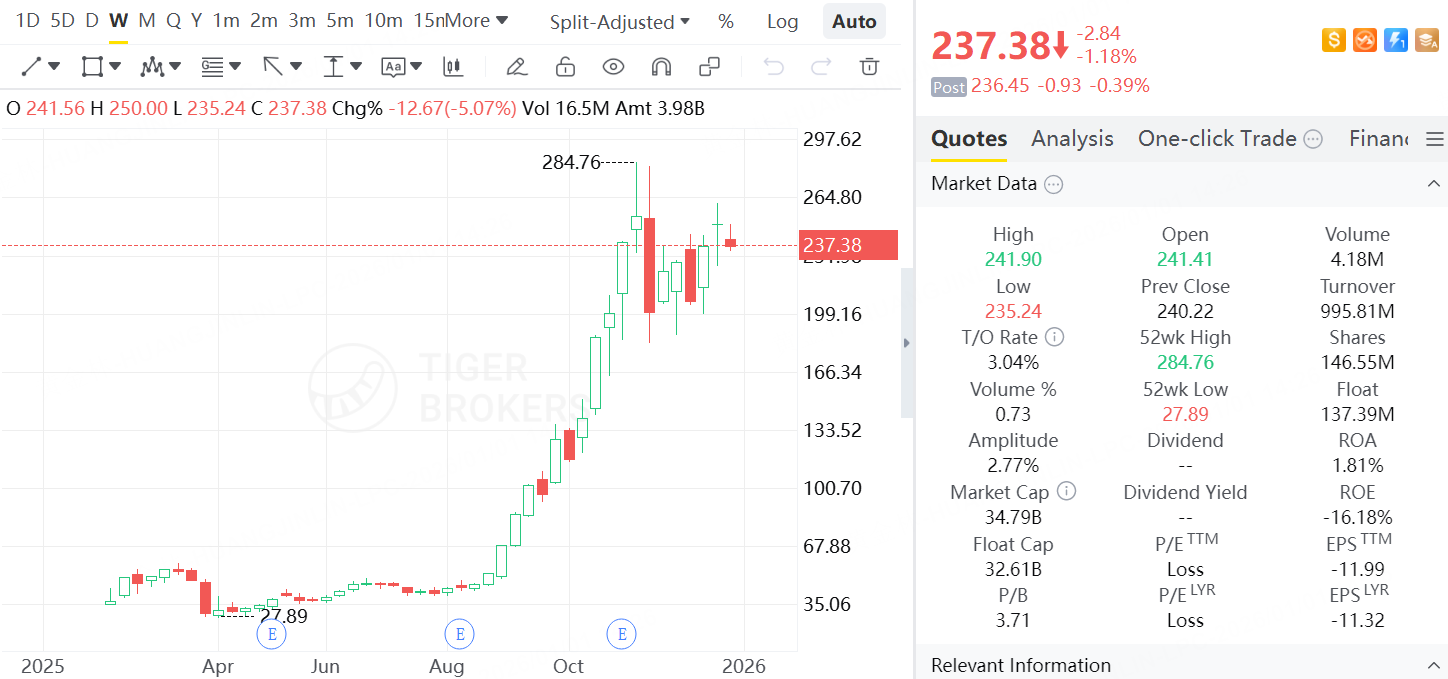 美光科技(Micron):受益于高带宽存储(HBM)需求激增,2025年股价累计上涨 约240%。