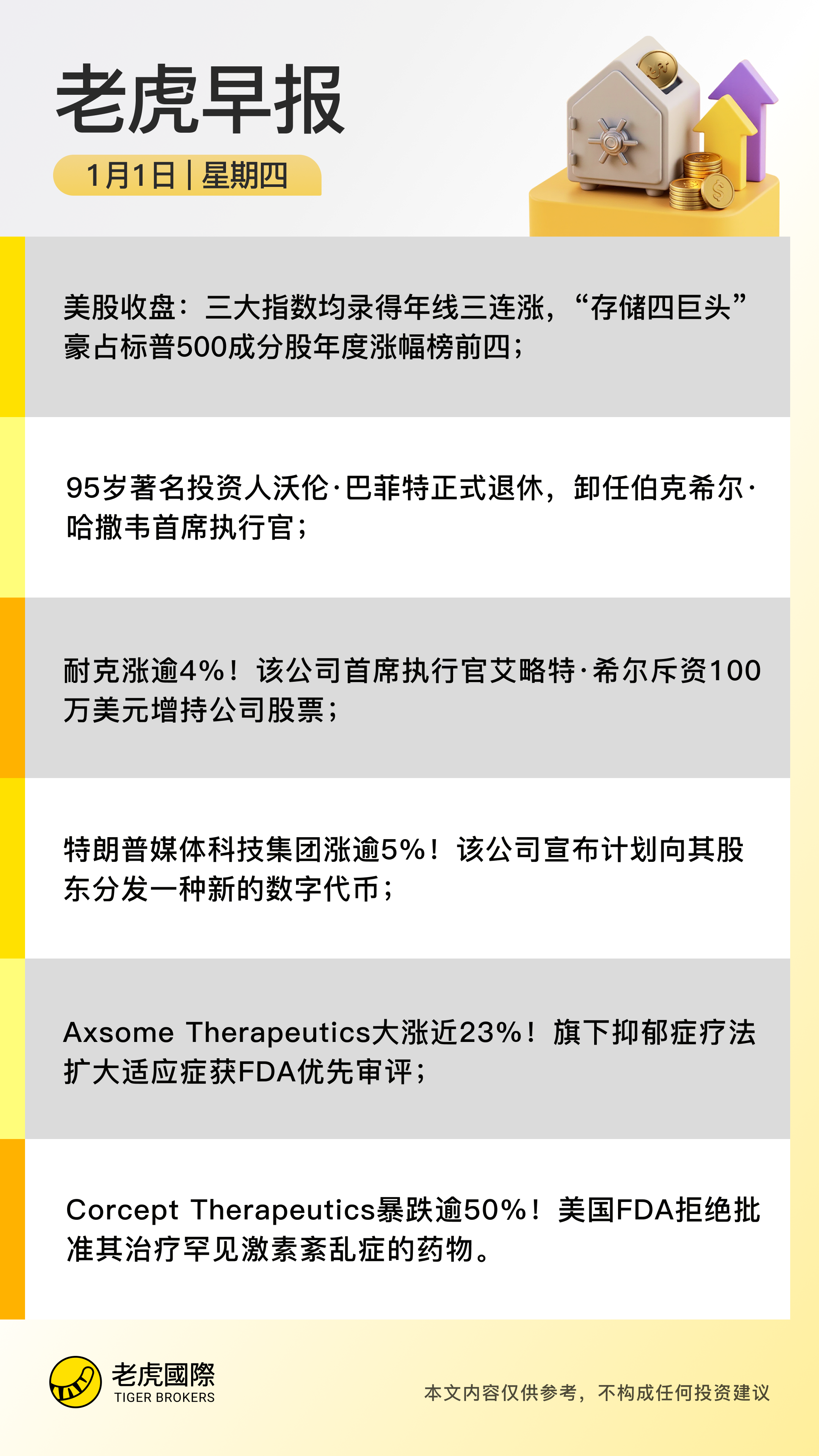 美股收盘:三大指数均录得年线三连涨,“存储四巨头”豪占标普500成分股年度涨幅榜前四;