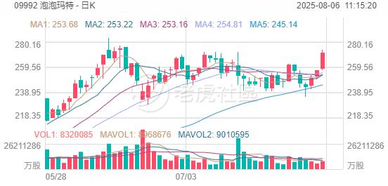 8月6日,泡泡玛特盘中涨超5%,近3日累涨11%,大摩指公司平台价值被低估。