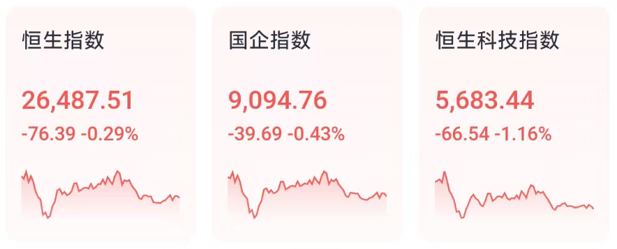 1月20日周二,受关税以及格陵兰岛紧张局势影响,港股三大指数再度收跌,恒生科技指数下跌1.16%,恒生指数、国企指数分别下跌0.29%及0.43%,恒指跌破26500点整数关口。