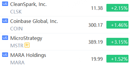 1月23日,加密货币概念股盘初齐涨,MicroStrategy涨超3%,Cleanspark涨超2%,Coinbase,MARA Holdings涨超1%。