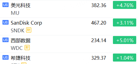 1月21日,美股存储概念股表现强势,西部数据涨超5%,美光科技涨超4%,SanDisk涨超3%,希捷科技涨超1%。