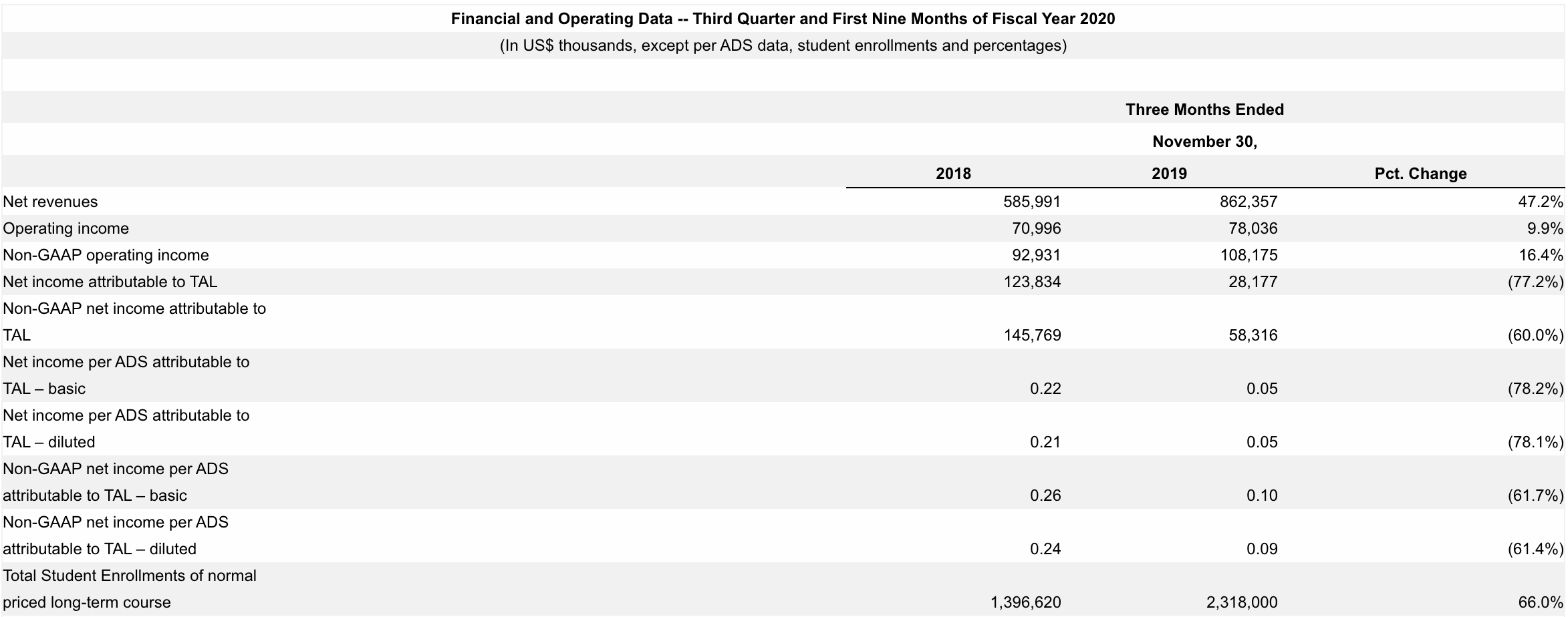 好未来 1月21日美股盘前公布了其截至2019年11月30日的2020财年第三季度业绩,