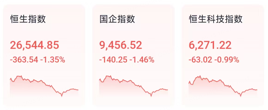 9月18日周四,港股三大指数盘初曾创阶段新高,但午后同步大幅回落。截至收盘,恒生指数跌1.35%,国企指数、恒生科技指数分别下跌1.46%及0.99%。