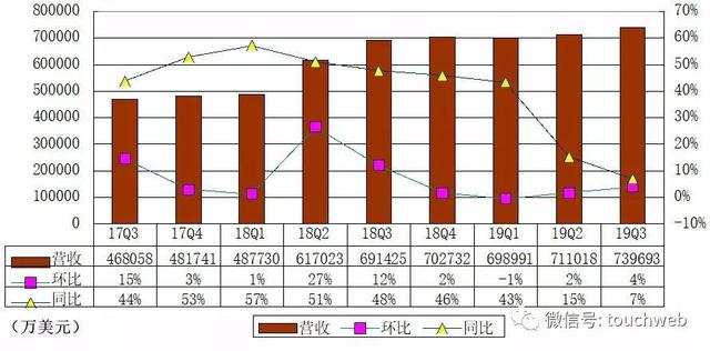 爱奇艺$(IQ)$今日公布了截至2019年9月30日的第三季度未经审计的财务报告。财报显示,爱奇艺2019年三季度营收74亿元(约10亿美元),同比增长7%。