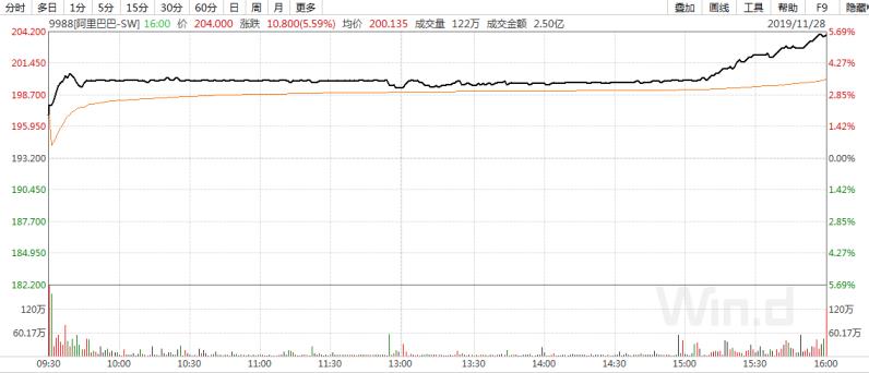 上市三日,阿里巴巴较发行价已上涨15.9%。11月28日收盘,阿里巴巴收涨5.59%至204港元,而美股11月27日也攀升至年内高点200.98美元/股。