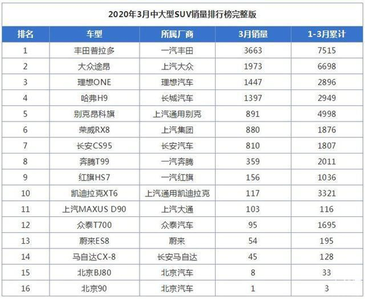原标题:3月中大型SUV销量排行榜,丰田普拉多第一,红旗HS7销量惨淡 来源:雪球综合