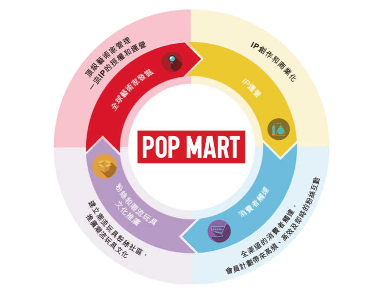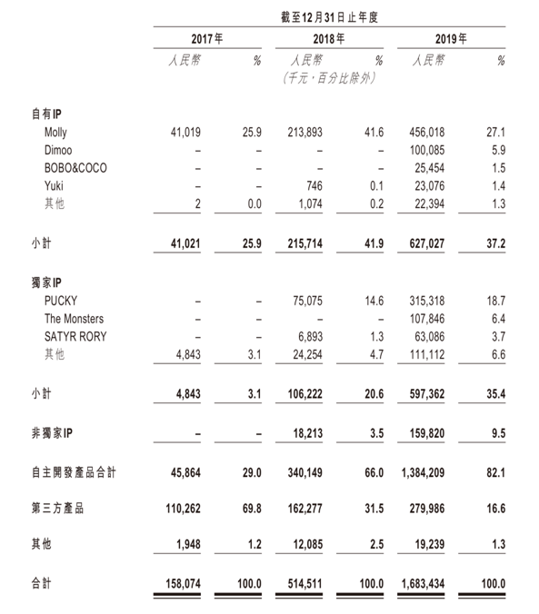值得一提的是,泡泡玛特在招股书中强调,IP是其业务核心,也是商业化的基础,具体即指根据IP源源不断地创作原创、独特和有趣的潮流玩具产品,并转而提升其知名度并增加其商业价值。