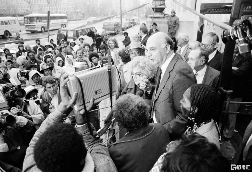 1980年4月,美国联邦利率达到21.5%的历史高位,沃尔克在离开美联储办公室时被记者和抗议者围堵