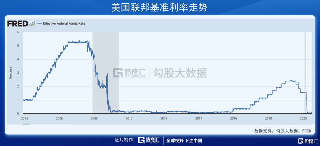 2008年后,为了刺激市场,美联储一路下调联邦基准利率,直到2015年才缓慢进入加息周期。